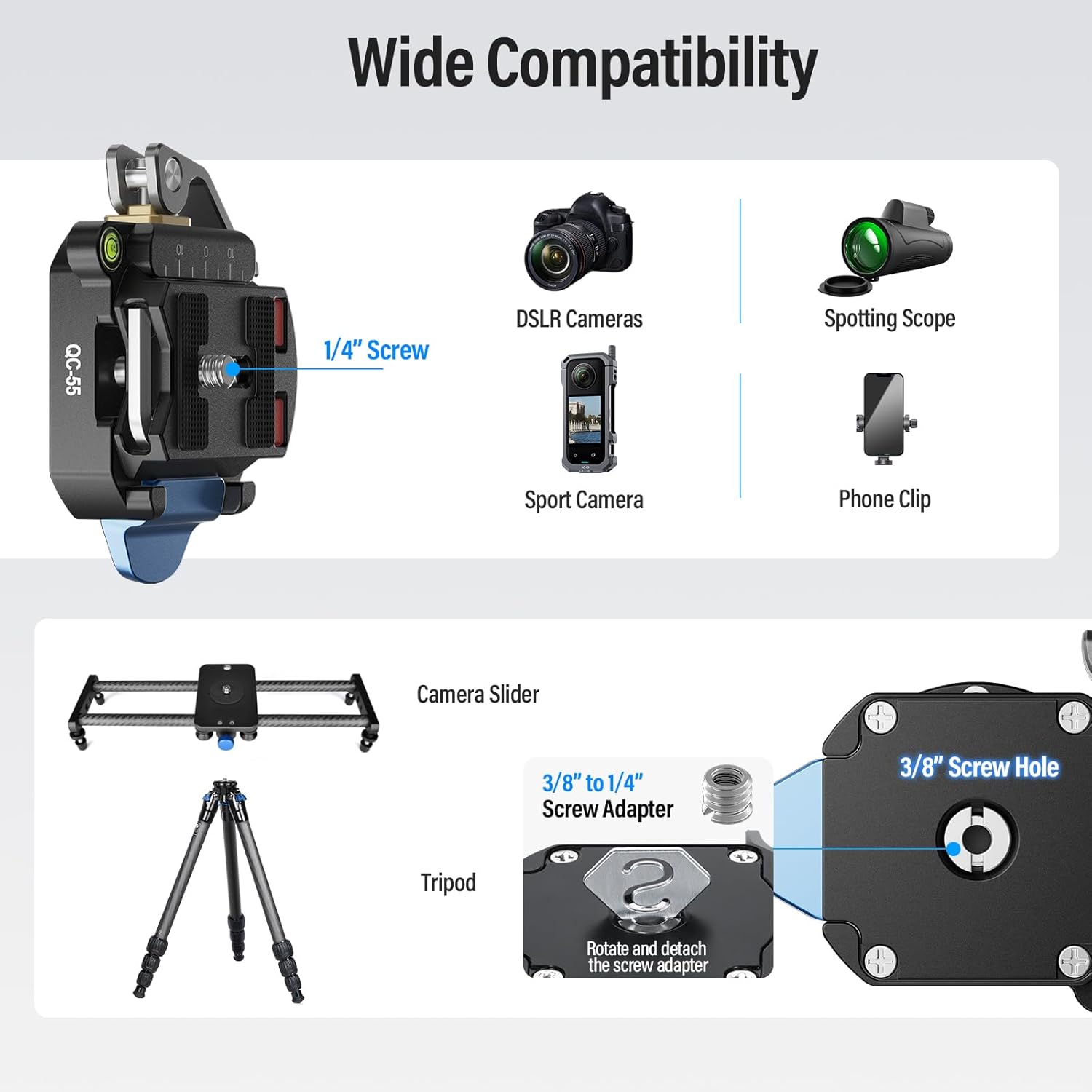 SIRUI 55mm Quick Release Plate and Clamp Base Kit 1/4" and 3/8" Thread QC-55